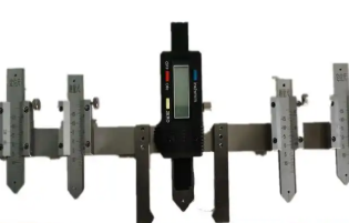 數顯示轍叉磨耗測量尺,該檢測儀橫向測量尺可在合金鋼轍叉心軌25mm斷面處任意位置橫向移動,垂直磨耗測量尺可在轍叉處軌寬25mm斷面處任意位置上測得其垂直磨耗和兩側翼軌磨耗數值。使用輕便,操作簡單,讀數精確,結構設計新穎,并可在被測量位置和下道時任意測量和讀數。