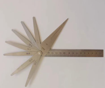 2、塞尺片: 0.02、0.03、0.04、0.05、0.06、0.07、0.08、0.09、0.1、0.15、0.2、0.25、0.3、0.4、0.5、0.75、1.0 共17片