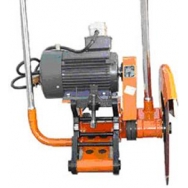 4、 一只手拉動操縱桿使切軌機處于鋼軌上方,同時另一只手扶持另一操縱桿,以防薄片砂輪撞擊鋼軌。